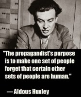“The propagandist’s purpose is to make one set of people forget that certain other sets of people are human.” – Aldous Huxley